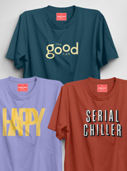 Pack Of 3 - Petrol Blue, Blue Moon, Burnt Orange Unisex Printed T-Shirt